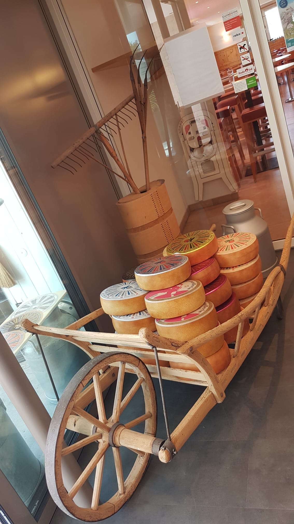Gut unterwegs mit unseren schmucken Topis im urchigen Appenzellerland, mit Blick auf den Säntis, erreichten wir gegen 11.00 Uhr die Schaukäserei, seit 1978 in Stein AR. Auf der Führung wurde uns auf eindrückliche Weise über die Handwerkskunst des Käsens berichtet. Auch konnten wir verschiedene Käsesorten kosten. Anschliessend wurde uns ein typischer «Appenzeller Chäsflade» serviert. Dies in Begleitung von Hackbrett Klängen.